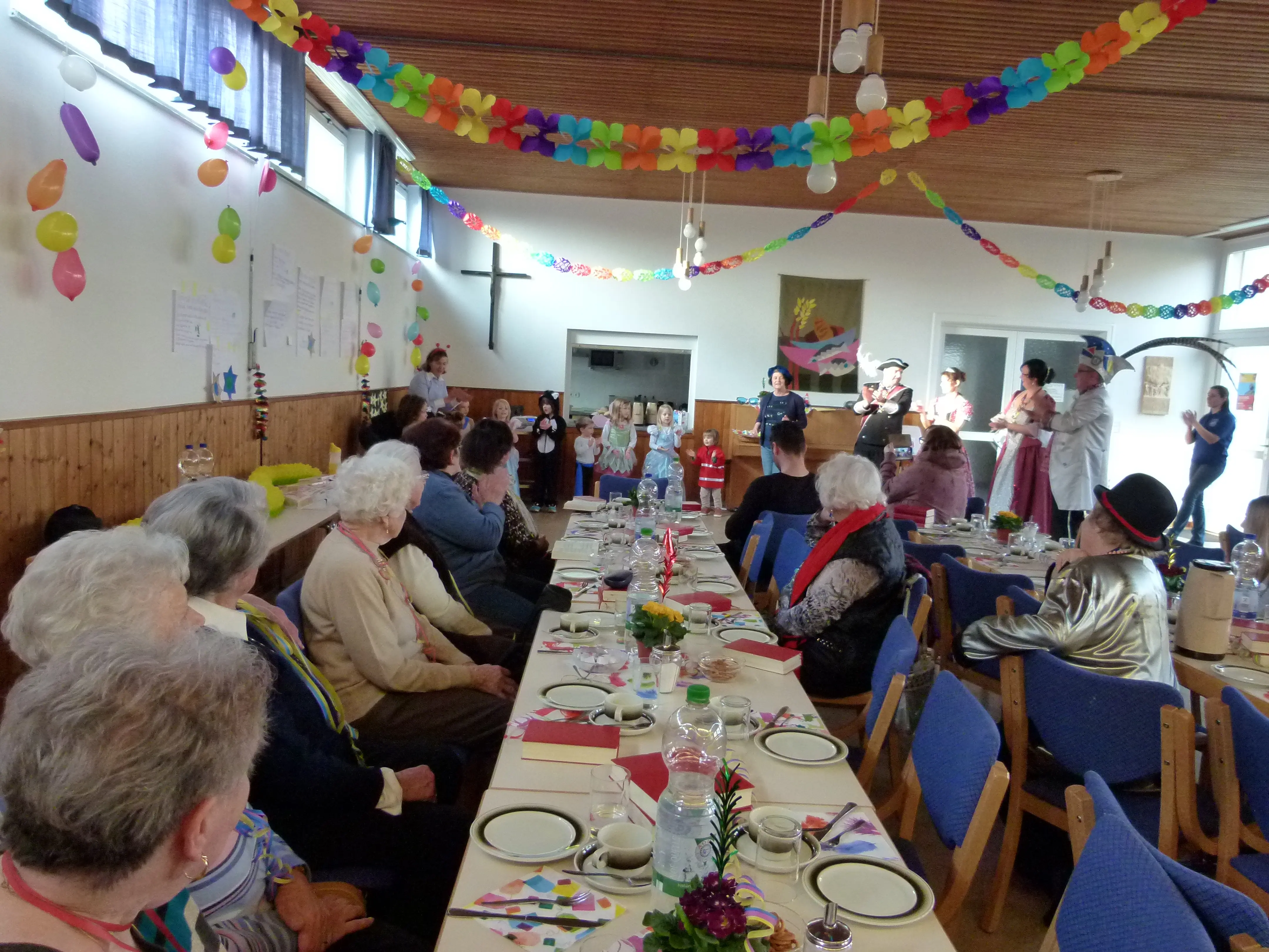 Das bunte Programm im Anschluss wird jeweils zu Beginn des Jahres vom Helferteam erarbeitet und orientiert sich ebenfalls an der Jahreszeit. Zu Fasching besuchen uns Prinzenpaar und Gardemädchen, im Mai singen und hören wir Frühlingslieder und -gedichte, im Sommer erfreuen uns die Mingos mit Musik. Dazwischen gibt es Musik- oder Bildervorträge und alle Damen spielen auch leidenschaftlich gerne Bingo. Auch durchaus ernstere – leider wichtige – Themen wurden schon angesprochen: Patientenverfügung, Hospizarbeit oder Schutz vor Kriminalität.